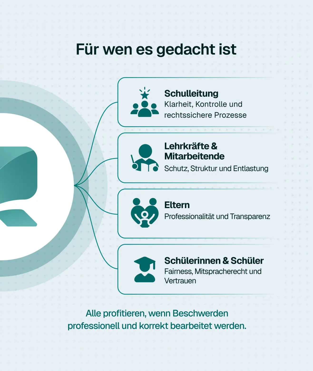 ResolveIt unterstützt Schulen & Behörden dabei, nachvollziehbare und gut dokumentierte Entscheidungen zu treffen – ohne juristische Fachkenntnisse zu erfordern.